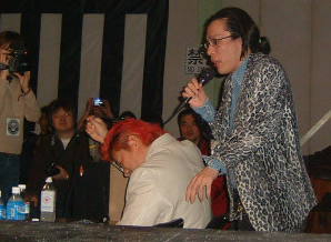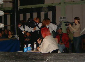 ★竹ノ塚は遠いなあ。駅からも会場遠いなあ。会場前にはとんとん丸ラーメンの屋台も出てました。食いたかったなあ。んで会場はBFよりちょこっと大き目の倉庫。そいで開場前から長蛇の列が出来てました。住宅地の為路駐している馬鹿者のせいで警察まで登場。まったく会場下調べしてから来いっつうの。したら車止めてから来んべっつうの。と波瀾の幕開けか?会場は人でびっしり埋まり素敵な風景。試合前に解説のMEN'Sテイオー選手が入場。で,666に拉致された須山さんが登場。途中からニコライもいたよ。二人の解説&実況はなかなか面白かったなあ。音響が上手く出来てたらもっと良かったのにね。全体的に音のトラブルが多いのが残念だった。一応レコード会社とのコラボだから余計に。試合内容はそんなにクオリティーが高くはなかったのに結構満足出来た大会でした。興行がトータル的に良かったのでしょうかね。エンディングにはサザエさんのパロディーの映像で笑わしてもらいました。超大物Xと一緒に観戦したり。ケミッチにも遭えて良かったなあ。だけど次行くかと聞かれたら???かな。まずまずの大会でした。3000円なら全然OKだな!!
