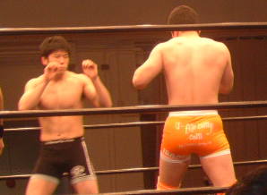 ★さあ気を取りなおしての本戦第1試合。戦前から元U信者としては期待してる一戦でした。しかし期待外れとなりました。まず入場時,コール時から元気が無い。大久保選手はそんなキャラなんだろうけど仮にも第1試合。もっとその意味を考えて欲しかった。試合では鋭いキックやグランドでの高等技術を見せてくれました。しかし,俺はかつてのUWFがやってたような試合を創造してたのでなんか良くなかったです。確かにスタイルやルールこそ似せてるものの。かつて画面の中で見たUWFには,前田を越えようとか俺がここでのし上がるだの気持ち。ジェラシーが存在してたから素晴らしかったのに。今試合ではそんな気持ちがこもった試合ではありませんでした。確かに技術はUPしてるでしょうが,気持ちが見えない試合は,総合格闘技の試合となんら変わらなかったと思います。で,試合はジャーマン等で森山選手が攻めるも。大久保選手の方が1枚上手って感じでスリーパーを逃れらりそうになるとこをガッチリ上向きにして胴締めスリーパーで一本取りました。なんんだか抜け殻同士の戦いって感じがしました。
