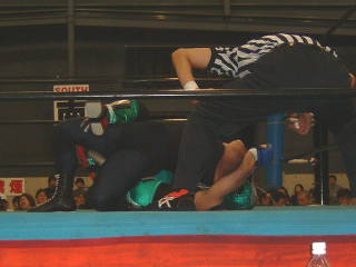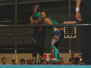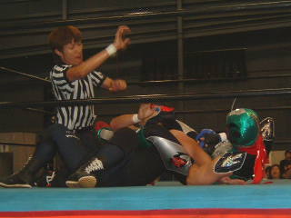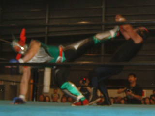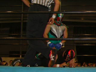 ★バトらしいバトの興行...怪しいカードが一つ位入ってた方が"らしい"。まさに"らしい"マッチメイク。正義の味方ライダー選手と,悪の組織"DREAM DEMOLITIONS"からの刺客ツームストン選手の戦いは面白かった。ツームストン選手は一杯食わせ物的な風貌でした。試合では悪党と言うより小悪党的なノリでした。特に技や動きでのインパクトは無いもののその姑息な試合運びにはやられました。ガッチリハートを掴まれたかな(笑)。一方正義のヒーローライダー選手。動きが違いすぎ技のキレが何倍も凄く見えました。ライダー選手がちょっと強過ぎました...しかもツームストン選手が攻めていても姑息なので感情移入しづらく正義のヒーローを応援する雰囲気にはなりませんでした。が,内容的にはなかなか面白かったです。最後はライダー選手のライダーキックから変形飛び付き腕ひしぎ十字固めでツームストン選手の悪事に染まった腕が破壊されました。また見たいなブラック・ツームストン選手。さて次の悪の刺客は.....。