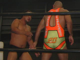 ★"アレクサンダー大塚"がバトのリングに帰ってくる...その事実だけでどれだけ期待に胸膨らませたか。マルコ・ファスを殴り倒し,UFOで活躍し...総合のリングで評価を下げ,ゼロワンでとんでもない扱いをされ...アレク選手の世間の評価は散々なものに。でもマルコ・ファスを殴り倒した時の感動は一生忘れられないだろう...どれだけ多くの勇気を貰ったか,どれだけプロレスファンとしての誇りを守ってもらったか。あの当時の俺はアレク選手に凄い勇気をもらった。バトのリングには総合格闘家としての"アレクサンダー大塚"を望む空気は全く無い!!みんな"格闘探偵団のアレクサンダー大塚"を待っているのだ!!AOコーナーが流れると,色々な思い出が蘇るようだった。なんだかもう胸が一杯って感じだった。そして,オーバー・ザ・トップで石川選手が入場。二人がリング上にいる景色...なんともたまらないなあ。二人の表情から今日は最高のバトラーツが見れるなと確信させられた。ゴングが鳴ると空気が張り詰める。呼吸すらまともに出来ない。観ている観客までも息苦しい。そんな静寂なんて「どうってことねえよ」とばかりにバチバチと張り合う両選手。のっけからバチバチファイト全開だ。その後もお互い激しくシバキ合う。ブレーク後の空気がたまらない。グランドでは石川選手がエグイ仕掛けをして行く。アレク選手もグランドではそうやすやすと極めさせない。そして舞台は場外へ。場外でも激しくシバキ合う。リングに戻っても熱気は冷める事を知らない。スリーパーやドロップキック,強烈なビンタで石川選手が追い込まれる。石川選手も情念で息をふき返すとナーシャ!!と叫びたくなるようなバックドロップを決める。そして情念漂うグランドに。アキレス腱固めやスリーパー,CWフェイスロックをエグく極めていく石川選手。アレク選手も肩固め等総合で培ってきたものを出すも情念のしつこさににはかなわず。アレク選手が足に絡み付き関節を狙うも石川選手は上から動きを止めると,強烈すぎる情念ニーを叩き込む。そこでアレク選手の闘志にも再び熱い炎が宿る。スタンディングでのシバキ合い。殴られて痛いだろうに石川選手が嬉しそうな表情に...ゾクゾクッ!!俺の大好きな石川選手の表情...たまんね~!!アレク選手の張り手でダウンさせられ立ちあがる時の笑み...くほうッたまんねえ!!こういう時の"石川雄規"からは一瞬たりとも目が離せなくなる。アレク選手の関節地獄にも全く諦める事が無い石川選手...もう情念は止まらない。お互いに感情剥き出しの張り手合戦が,パンチ合戦にエスカレートしていく。レフェリーもいや神でも止められない雰囲気だ。もの凄い緊迫感に酸素が薄くなる場内...呼吸する事すら忘れる位だ。そして遂に大塚選手の殺人スープレックスが解禁!!強烈なジャーマン二連発からの垂直落下式ブレンバスター。さしもの石川選手もフラフラだ。そしてアレク選手が石川選手のバックからフルネルソンを...出るかKO率抜群の殺人フルネルソンスープレックス!?しかし,この技の恐ろしさを熟知してる石川選手は足をロックして決めさせない。体勢を入れ替えると延髄斬りが炸裂!!連発で延髄いや顔面斬りで大塚選手を倒し一気に卍固めへ!!そのままグランド卍で大塚選手の腕を極める石川選手。それを逃げらるとお互い技にならない技で気持ちの勝負。最後まで張り合う両者。しかしお互い取っ組みあった時無常にもゴングが。....ゴングが鳴ったのに組み合う両者はお互いヘッドバットで自ら終了のゴングを鳴らした。時間切れだけど会場からは惜しみ無い拍手が送られた。この続きへの期待が充満していた。観てるこっちもやっと呼吸がしやすくなった。なんとも緊張感がありスリルがあり"これぞバトラーツ"ってような試合でした。バチバチというよりバトラーツな試合でした。本当プロレスファンで良かったと思える試合でしたナーシャ!!試合後は検討を称え合う両者。そしてヘッドバットで額を切り流血したアレク選手がマイクを掴み静かに語った。色々あったけどまたバトのリングに帰れる嬉しさと,いつかみんなで集まりたいと...それに石川選手が大きな人間味で応える。石川選手の人間の大きさを考えたらみんなが戻って興行?....どうってことねえよ!!"石川雄規"と"格闘探偵団バトラーツ"の世界征服の野望はまだまだ終わってないから。ナーシャ!!