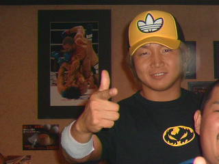★大会後は越谷にある"石川屋"にチーム日高屋で行きました。前回は予約してなく入れなかっただけに超嬉しい☆って感じでした。ふみっちありがとう。エビせん,豆腐サラダ,情念煮込み,つくね...どれも美味しかったなあ。特にエビせんはたまらなかったです。酒もススミイイ気分になっていると試合を終えた選手達も続々やって来ました。そして,NOAHの池田選手とヨネ選手まで来店...夢のような空間でした。この面子がリング上で見たいなあと思いました。店内で日高選手とちょっとお話できました。俺が「実はFECファンなんです。すいません。」と言うと。「あの時は時計が止まってましたから。全然平気ですよ」とのお気ずかい...なんとも恐縮でした。その後は写真まで撮っていただきました。本当ありがとうございました。石川屋での夢の時間に酔いしれるあまり終電を逃しましたが,どうってことねえよ!!とばかりに居座りました。店外では石川選手が超暴走!!×△□...書けやしねえ。まあ超楽しかったんです!!閉店後は外国人選手・藤原選手・日高選手・藤田選手を見送りB-CLUBそばのバーへお客さんと残ったレスラーの方々と行きました。そこでは,トキオさんと二人きりの寂しい僕らにヨネ選手が気を使って「乾杯」してくれました...うほお優しい!!バーは石川選手のおごりのようでした...御馳走様でした。バーを出てトキオさんと雨の中漫画喫茶を探し泊まりました。なかなかいいもんですな漫画喫茶。...朝の越谷駅は昨日の余韻を楽しめるような静かなたたずまいだった。