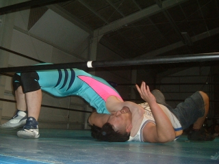 現在の得意技とでも言うべき武者返しからそのまま肩固めに,さらにそこからブリッジする