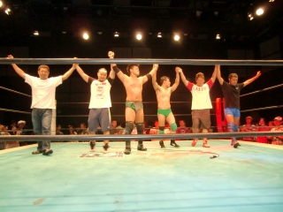最後は「今日闘った原学(スルガマナブ)以外の選手リングに上がって下さい!!」と澤選手が言うが...やっぱり全然集まらないのは毎度の事(笑)。