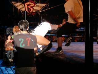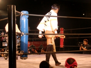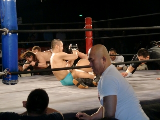 更にセコンドには大場選手が付き,いつものフーテンマットのように言葉で暴れまわる(笑)。