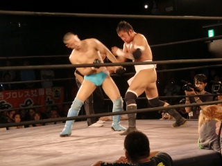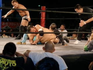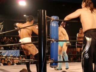 小野武志[フーテン・プロモーション]&土方隆司[狭山市市議会議員]vs田中純二[九州プロレス]&真霜拳號[KAIENTAI DOJO]
