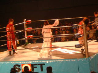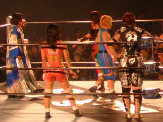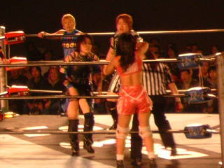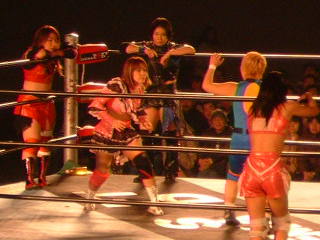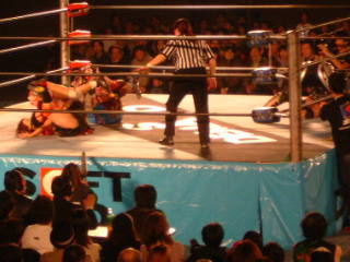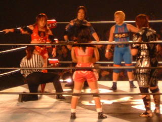★男っぽさが売りの大日本に組まれた女子プロマッチ。なかなか異彩だった。試合も結構面白かったです。松尾選手は"フロッグ・スプラッシュ"が素晴らしかったです。女子プロらしい丸め込みの連発にビックリしました。仲村選手は序盤かなり長い時間戦ってました。オールラウンドプレイヤーっぽいですね。カワイイのに気迫が凄くて良かったです。元気選手はデカカッタ。久しぶりに生で見たけどデッカイなあ。技もすっげえ重そうでした。宮崎選手は技が綺麗でした。下半身が安定してるからかレスリングも安定してるように見えました。タニー選手は面白かったです。喋りが面白いし,出す技も面白かったです。フー&3ダローも出ました。田村様はキレが素晴らしかった。堂々としたたたずまいでした。元気選手との打撃戦では一歩もひかない素晴らしさでした。試合は混戦の中タニー選手のパロスペシャルで松尾選手が敗れました。なかなか面白い試合でしたが,大日本とはミスマッチだった間も否めない気がしました。でもなかなか女子プロ観る機会がないので俺的には良かったですけど。特にNEOは面白そうだしフー♪