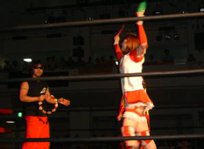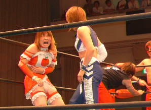 ★後楽園のオープニングはキャラ立ちしてるレスラー大集合の6人タッグ。入場にやたら時間をかけてキャラを見せるいつもの試合だ。よそいきではない試合を第1試合に組んだのは良かったかも。試合も下手をすればキャラ先行の選手ばかりなので,キャラだけ残るとそこから会場の試合への集中力が下がりがちになってしまう。しかし,山縣選手が流石キャリアがある分上手くコントロールしていました。それでいて各選手の個性がうまく絡まってなかなかこの手の試合にしてはいい試合でした。SCYCHO選手はトリッキーな動きと確かな技術を存分に披露。お船ちゃんはいつも通りのアイドルファイト。山縣選手は目立たないけどしっかり試合の要所要所を決める。HCKは派出な攻めでアッパーなレスリングで客を沸かす。アップル選手はまずまずの動きもしっかり自分を見せていました。そしてニラセ選手...だんだんレスラーらしくなっていくなあ。この日も手首の取り方等しっかりした技術がありました。試合は御約束連発で進み。終盤......場外戦に巻き込まれフィニッシュが見れず。しょうがないっちゃしょうがないが,セコンドの若手のトロさのせいでかなり損をしました。もっとキビキビ試合を邪魔しないようにセコンドして欲しかったな。上越選手なんかはみちプロで何も学ばなかったのかなあ...。あと,ちかくの席の席の人が場外戦になってもどけないので逃げ送れそうになることも。もし乱闘に巻き込まれたら...団体にも迷惑かかるので場外戦はちゃんとどけましょう!!これはマナーだと思います。酒あおってる場合じゃねえっつうの!!まあフィニッシュが見れなかったのが残念。