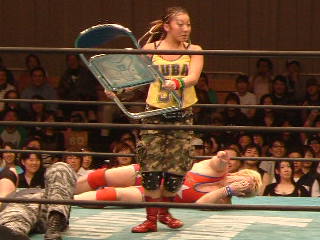 アップル選手はハードコアスタイルで登場。髪型もワイルドになってました。技(アップルバスター)のキレは抜群でしたね。YOSHIYA選手は別格の強さでした。廻りが小さいのでやたら迫力ありましたね。が,ここでいいのでしょうか。