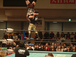 セカンドロープからの雪崩式ブレンバスター...ハンサム~!
