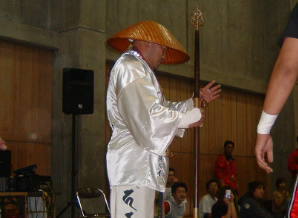 ★笑激...いつもながら面白かった試合です。毎度毎度分かっちゃいるけど笑ってしまうとは...してやられてるなあ。さて試合内容は序盤からいつものつぼワールド全開。しかもかなりのハッスルっぷり。人生選手もやれやれって感じで付き合います。つぼ選手のマッチョポーズやらなんやらが炸裂。コーナーチン攻めでは人生選手がやられたらやり返すという展開まで。一緒に行った植鬼食人はつぼ選手が隣に座りタッチ。変わりに試合に出てって...テッドさんに出る?って聞かれるし本当ラッキーだったなあ。うらやましいぜ。本人も喜んでて良かった。で次のターゲットは週プロの石川カメラマン。でもテッドさんに「死んじゃうだろ。」って...石川カメラマンもみちプロだよなあ。試合はそんな感じで...どんな感じだ?進みましたとさ。最後はつぼ選手がロープ拝み渡りを失敗して股間を強打してピン。とほほな展開なんだけど内容の濃い試合でした。やっぱ基本がしっかりしてるつぼ原人は単なる色物じゃないなあ。合わせる人生選手も振り幅が広い。とにかく面白いプロレスでした。笑いまくりでした。...やっぱみちのくプロレスっていいなあ。
