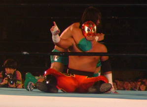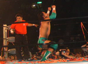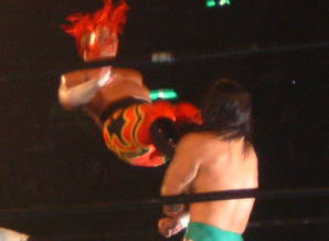 ●湯浅和也(13分23秒 片エビ固め)スペル・デメキン[大阪プロレス]○
