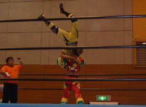 ★サルセロスは初目撃ながらガッチリ心を奪われました。なかなか見応えのある一戦でした。ムルシラゴエ選手は特に印象には残ってないですが,コール時のポーズがカッケエかったです。飛ぶけどバンプがちょっと怖いかな。沼二郎選手は先輩の意地からか迫力がありました。マンゴー選手を気仙沼落しでぶん投げたり海の魂もガッチリ決めて行ってました。一方サルセロス。マンゴー選手は年齢が22歳...え?と思う風貌でした。繰出す技はどれもド迫力でした。パワーファイターだけど動きもキレがあり良いって聞いてはいたけど予想以上でした。華井選手は...素晴らしいです。キャリアから考えられない上手さでした。マンゴー選手にパワフルさに影は薄めですが実にイイ仕事をしてました。とにかく受けが抜群でした。バンプのナチュラルさ。技を受ける時のポジション取りや見せ方マジ素晴らしかったです。攻めでは少々雑なとこが出るもののそれを補って余りある上手さでした。試合はムルシエラゴ選手に狙いを絞ったサルセロスが怒涛のラッシュ。最後は華井選手が電光石火のサルサルサⅡ(変形の木戸クラッチ)でピンフォールを奪いました。沼二郎選手&ムルシエラゴ選手の粘りが光りサルセロスの素晴らしさが全開感じられたイイ試合でした。