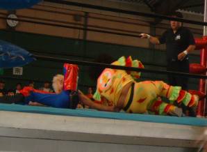 ★試合は序盤から両軍意地剥き出しの試合となった。井上選手はやはり体の細さが目立っていたが,気迫を全面に押しだして補ってました。大声を出してたし,顔の表情も素晴らしかったです。持ち前の綺麗なバンプで受けでもダメージを最小限に抑えていたと思います。攻撃ではスワンダイブ式のミサイルキックが最高でした。高さ・バランス・タメ・空中姿勢最高の一撃でした。湯浅選手はこんなとこで負けてられないとばかりに青い炎のような熱さでした...激しい戦いっぷりは貫禄ありました。マンゴー選手はパワフルで前日にも増して迫力ありました。出す技出す技が迫力ありました。湯浅選手との当たりの強い攻防は凄かったです。華井選手は前日に引き続き上手かったです。受けが上手いのはもちろん間の取り方とかも最高でした。華井選手はマジで凄いイイ選手でした。試合は両軍一進一退のシーソーゲームが続きました。終盤湯浅選手が主導権を握りましたが,華井選手が持ち込んだギターを巡る攻防から正規軍から勝利の女神が離れて行きました。すったもんだの末正規軍を分断したサルセロス...実に老獪で上手かった。結局ギターで殴られたのは井上選手。ギターが粉々になるほどの威力に事実上の戦闘不能。マンゴー選手の駄目押しのプルプルマンゴーが決まると井上選手に肩を上げる余力はなくサルセロスが勝利しました。非情にスイングした一戦でした。井上選手の驚異的な粘りに感動し,湯浅vsマンゴーの攻防に興奮し。華井選手の上手さに酔いしれた最高の試合でした。若い力のぶつかり合いは激しく新しい輝きを放っていた!!