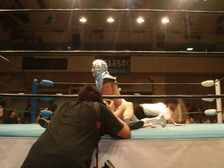 ここは,みちのくプロレスの生え抜き日向寺選手に頑張って貰いたい所。