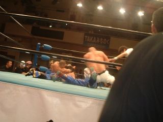 乱入のken選手をタイガー選手が迎撃