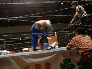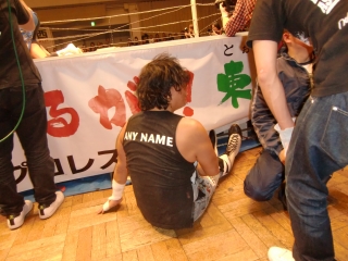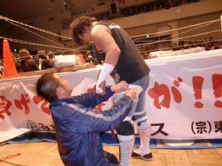 大仁田選手は怪我か?...と思ったらGパンが破れただけのようだ(笑)