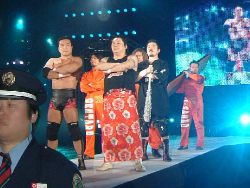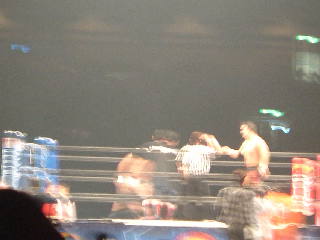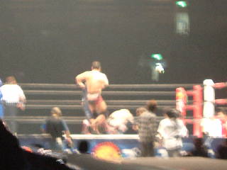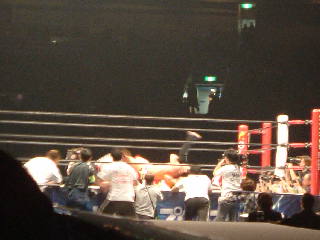★またも友達がチケットを貰ったので,急遽新日本最後のドームに行きました。もうドームでプロレス観る事は無いと思っていましたので,なんか不思議な感じでした。中に入るとバックチェック。まあテロが怖いですからね。そして,飲み物を紙コップに移し変え...え~。ハッスルみてえ。中で買わせたいんだろうけど...こんな事してっから駄目なんだよな。とか言ってみた。なので僕のお茶は廃棄(怒)。中の売店は一部のみ営業...そんなに大変なのか新日本?アリーナに出るや久々のドーム。アリーナで観るなんていつ以来だ?でもアリーナの席数は僕の知ってる席数ではなかった。昔より確実に席が少なかった。リング上では女性歌手が熱唱中...誰かよくわかりませんでしたね。その後新日本の選手が入場し,飯塚選手が挨拶しました。いよいよ最後のドームが始まる。ちなみに試合中の写真は,フラッシュ禁止とかケツの穴の小さい事言ってるので綺麗に撮れてません。とにかく細かいよ新日本。いいもの提供しないで,観客にルール課してばっかじゃ義務教育と一緒だべ。だから入んないんだよ!!とか言ってみた。