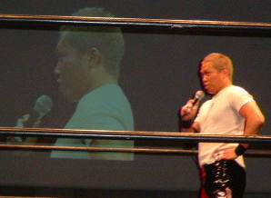 ★斗猛矢&Xvs吉田和則[イーグル]&Xというカード。こりゃあXはどうせたいした選手じゃねえんだろうなあ。と,タカくくってました。まず吉田選手のパートナーXはウィンガー選手。大日本辞めてPWCとは驚き。目は大丈夫なのかなあ。で,斗猛矢選手のパートナーXは"トンパチ"!?すると,デデデンデデデンデデデン♪と怪しい折原選手のテーマ曲が!!本物でした。試合はなかなか面白かったです。斗猛矢選手はダーティーな感じの攻め。折原選手は吉田選手に対してえぐすぎる攻撃でした。天龍イズム爆発です。吉田選手は耐えまくりましたが力の差がありすぎました。でもかなり耐えたからたいしたもんだ。ウィンガー選手はセントーンなどで見せ場はちょこっと作りましたが,大半はコーナーで激を飛ばし試合はあまりしませんでした。終盤折原選手&斗猛矢選手の猛攻を受けまくった吉田選手でしたが,斗猛矢選手のSODの前に敗れました。しかし折原選手素晴らしいです。フェイクをつかわずえぐく当てに行く攻撃は,フェイクを使いまくる斗猛矢選手と組む事によってより素晴らしく見えました。いや~なんか得した気分。