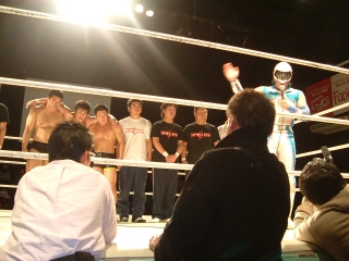 試合の無い生徒や卒業生達はビシッと気を緩める事無くセコンドや雑用。そしてリング上の選手達は,良い緊張感を保ち伸び伸び素晴らしいファイト。おじさん若者達の頑張りに,疲れたより活力が。素晴らしい興行は疲れるってのが僕の常識なのですが,今回は疲れを超えて活力が湧いたんですよ。とにかく素晴らしかった。本当良い興行でぐっときました。感動しました。TOKI兄さんとも話しましたが,泣きそうになる興行でした。ってか観戦仲間がいなけりゃ泣いてたな。1㍑の容器で,9.9デシリットル水が入ってるぎりぎり状態でしたね。本当もう少しで1.01㍑の涙で溢れるとこでした。あぶね~よ。なので試合後サインを貰うのをやめました。本当に素晴らしすぎて涙出ますよSUPER CREW!!ちょっと新人選手としてはラベルの違う選手達でした...レベルでしょ。嗚呼プロレスファンで良かったなあ。感動をありがとう!!