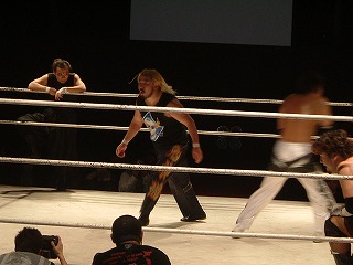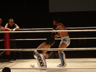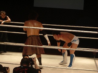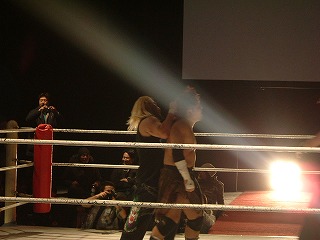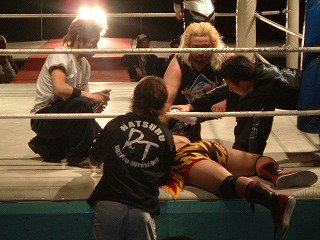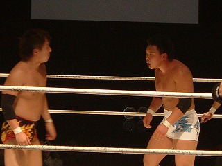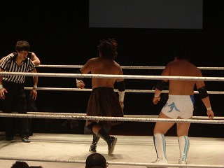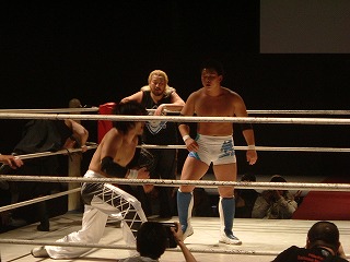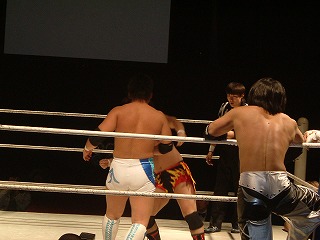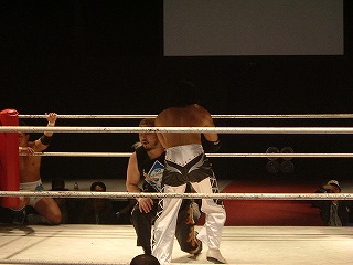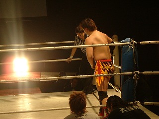 その後マイクでもっともらしい事を言うソルジャー選手と藤田選手。ですが,試合でもっと頑張って欲しかった。世代闘争って試合なら勝ち負けは重要です。まして若手軍は勝ちに拘らなければいけないはず。が,椹木選手を見殺しにした。椹木選手を育てるような試合をした。それは違うと思う。マイクで世代闘争を言うなら,椹木選手を見殺しにせず早めのタッチやカットプレーに行くべきだった。作戦だったのかもしれないがもっと勝ちにこだわって欲しかった。だから試合後のマイクは説得力が無かった。拍手もまばらだった。そして観客達は終わった後も残った。椹木選手が立つまで待った。そしてボロボロながら立ち上がった椹木選手に心のこもった拍手が注がれた。久々にあんな激しい潰しのプロレスを観た。それに耐えた椹木選手がこの試合の勝者だ。最後に立っていられなくても勝者だ。助けてくれなかった先輩達。叩き潰しに来た先輩達。そして若いながら強すぎた中嶋選手。そんな中,観客は椹木選手を待った。マイクを握れなくても待った。彼に拍手を贈る為待った。マイクなど出来なくても椹木選手の心意気は間違いなくこの日いたファンには伝わりました。少なくとも僕はそうだ。こんな怖い思いしても"頑張れ"ってしか言えない僕らですが,本当心の底からありがとうって言いたいです。ありがとう椹木選手!!