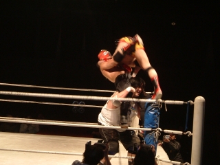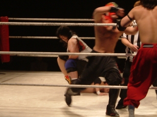 若手組の反撃開始!!...雪崩式フランケンシュタイナー