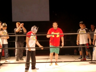 最後の全員集合しての総括では,はやて選手が代表の立場を使い恐ろしき試合を急遽マッチメーク(笑)。